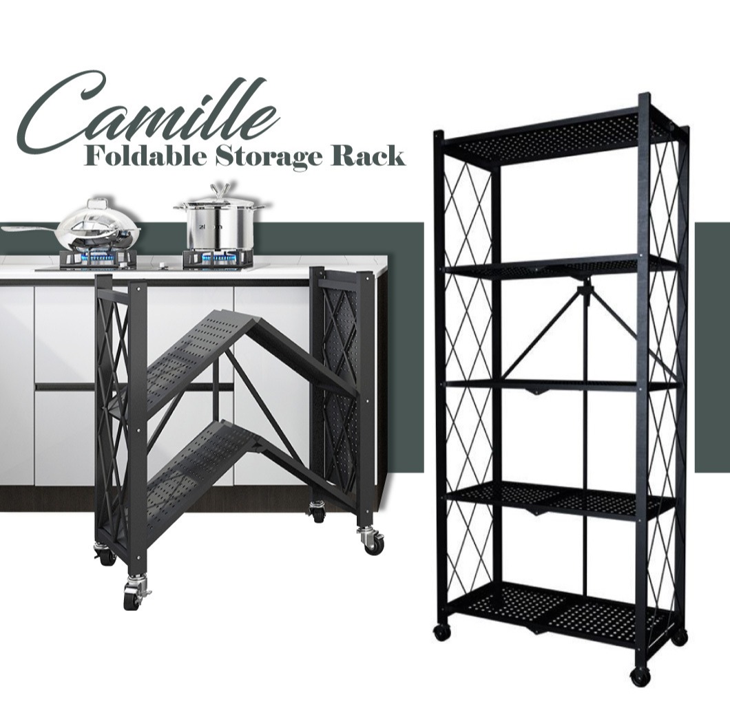 (JIJI.SG) CAMILLE Folding Storage Rack - Fully Foldable EASY INSTALL Full Metal Storage Rack Kitchen Rack / sd