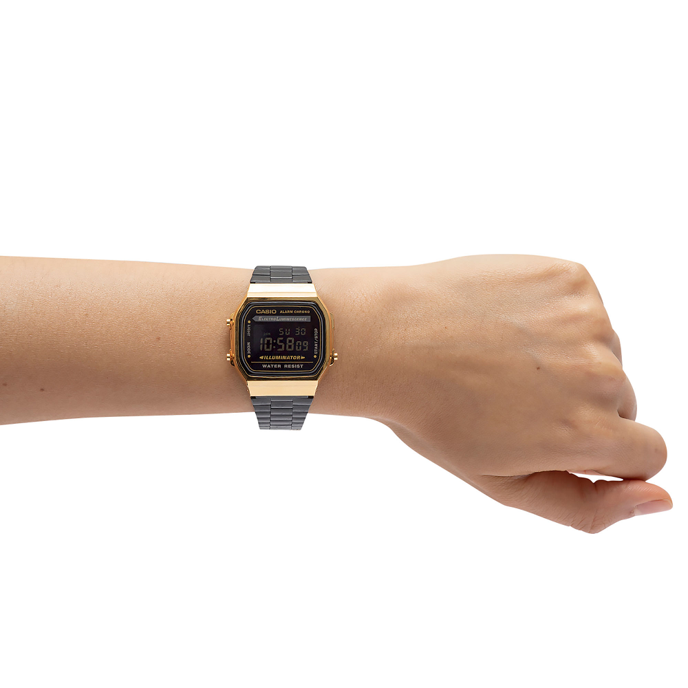 [Vinstore] Casio A168 Adjustable Black IP Stainless Steel Gold Tone Digital Quartz Men Women Watch A168WEGB-1B A168WEGB-1BDF A168WEGB-1 A-168WEGB-1B