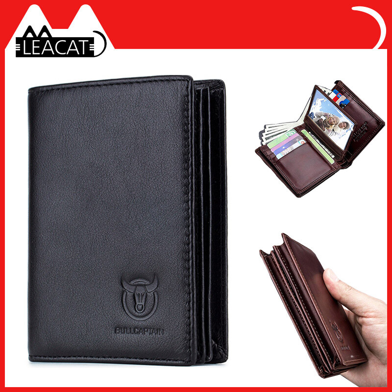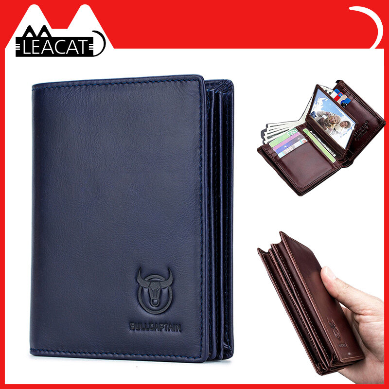 Leacat BULLCAPTAIN new RFID men's leather wallet short vertical locomotive British leisure multi-function card package leather wallet