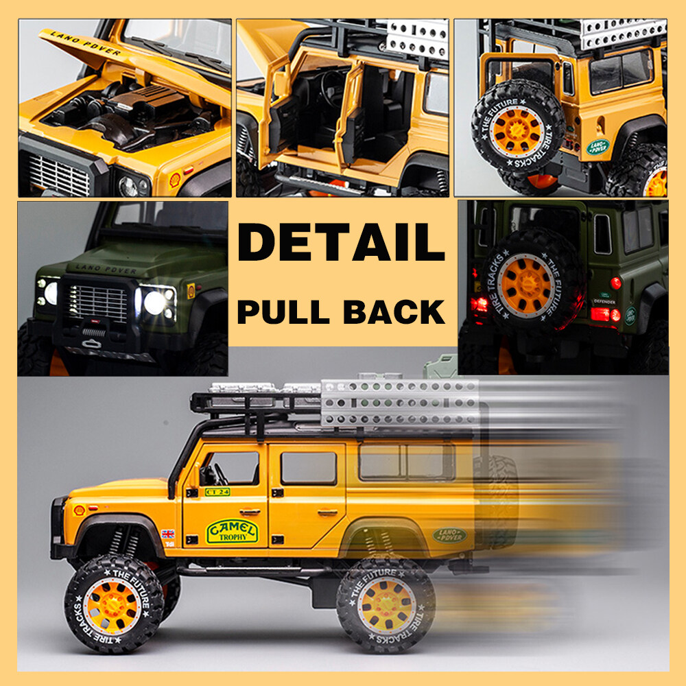 LEO 1:28 Land Rover Defender Camel trophy alloy model car big car monster truck toy for kids boys