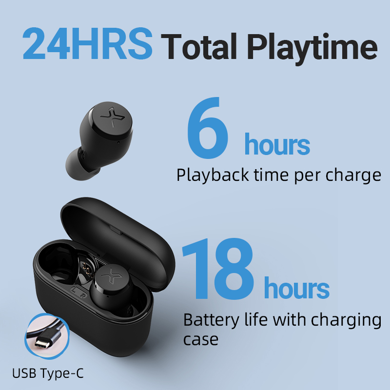 ♪6 hours of playtime per charge and 24 hours in total with the charging case