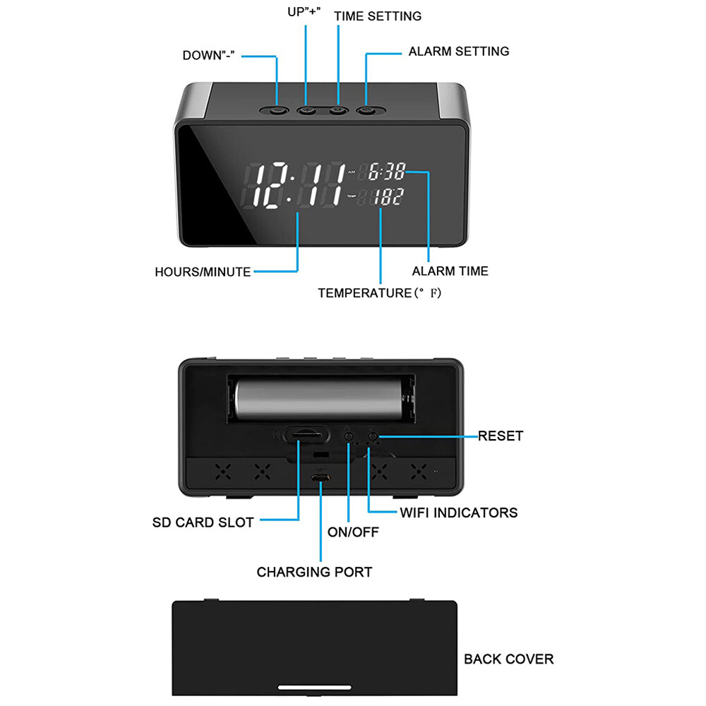 Specification: Name: Wifi electronic clock camera Resolution: 4K/1080P Memory expansion: 128G (not included) Night Vision: Support Battery capacity; 1600mah (included) Weight: 175g Size: 131*37.5*62.5mm