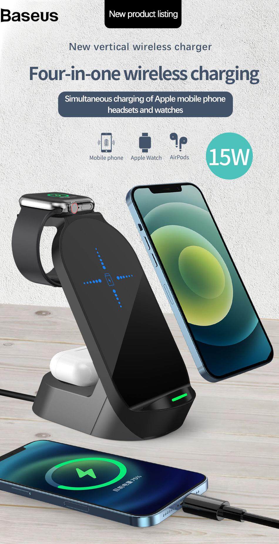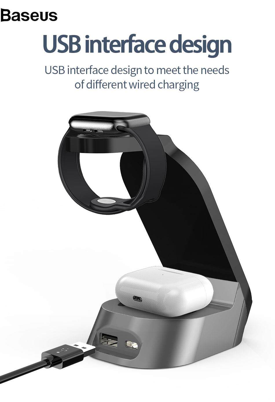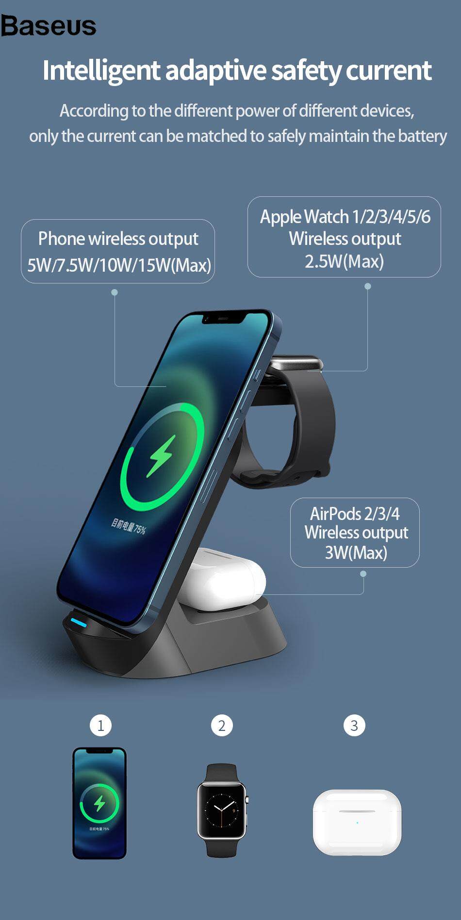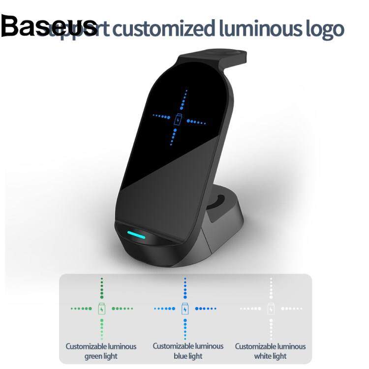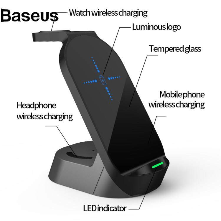 Baseus H30 3-in-1 15W Wireless Charger Stand Desktop Qi Wireless Charging Dock for iWatch AirPods Mobile Phones
