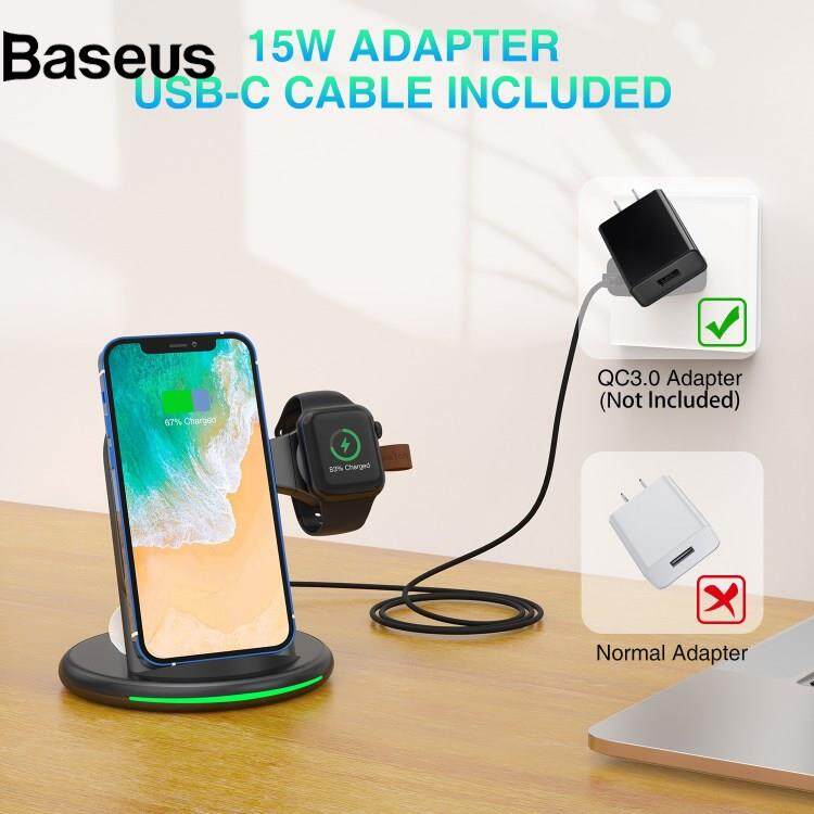 Baseus W-02 3 in 1 15W Wireless Charger for iPhone 13/12 Series/AirPods Pro Portable Charging Dock for Apple Watch