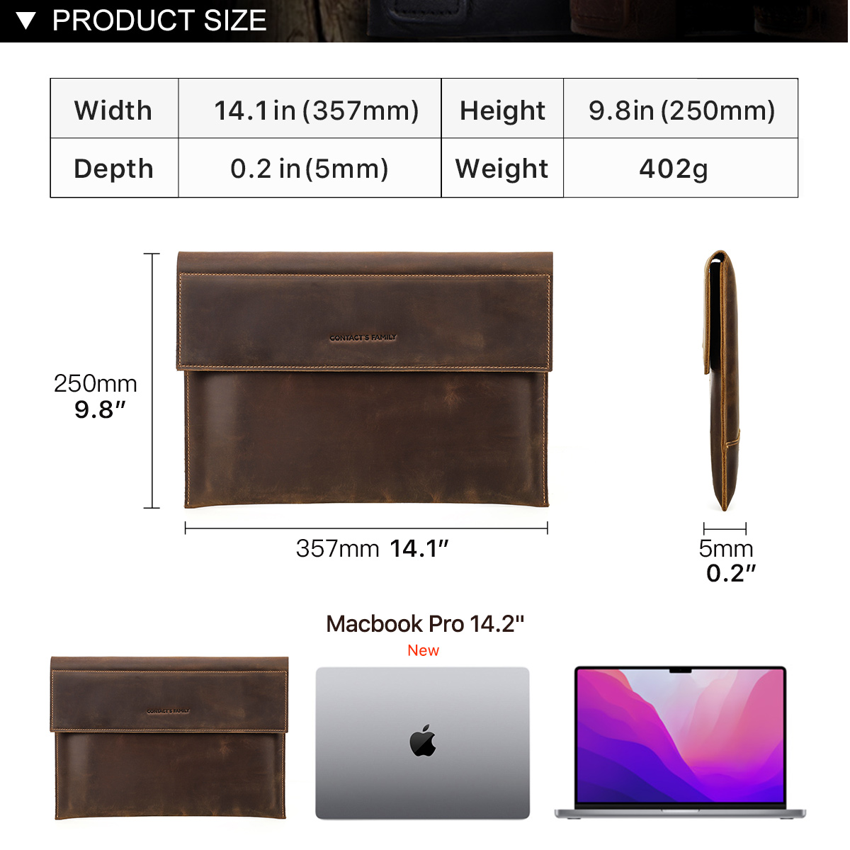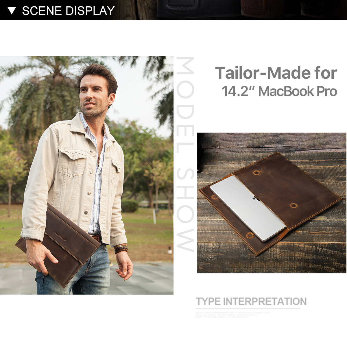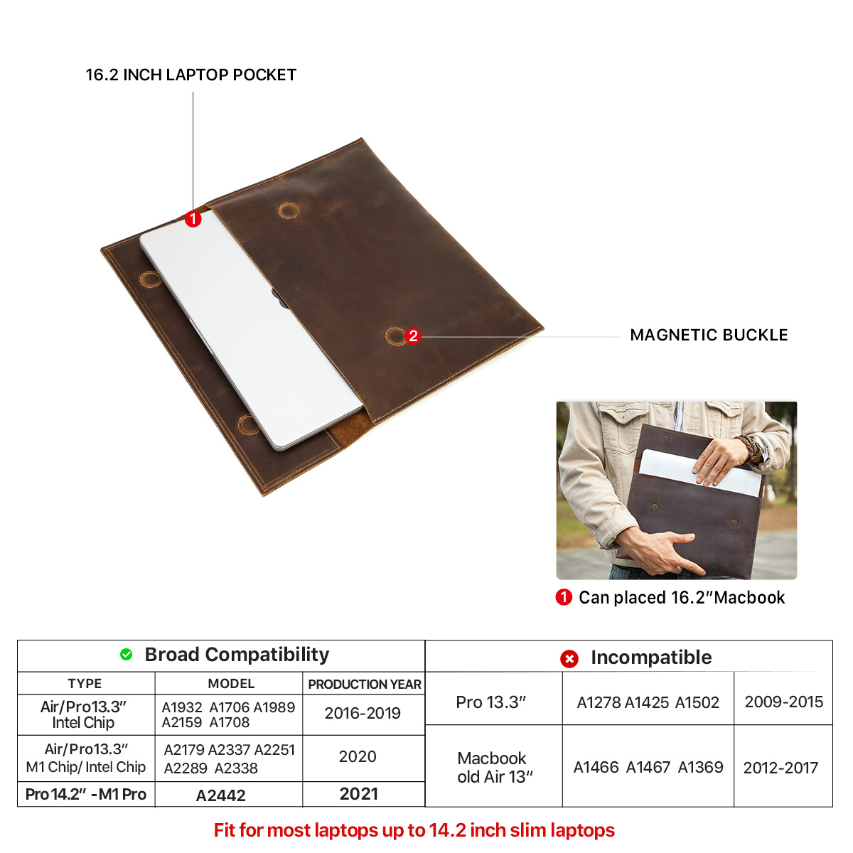 Genuine Leather Laptop Sleeve Case For MacBook 14.2/16.2 Inch 2021