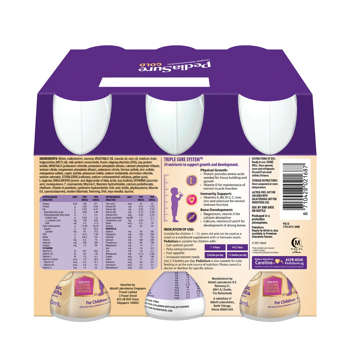 [Bundle of 3] PediaSure Gold Ready-to-Drink (RTD) - Classic Vanilla Flavour, 6 x 220ml