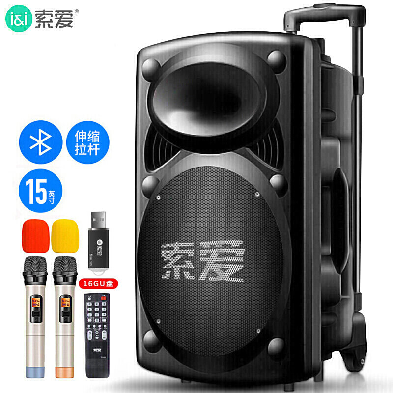 Sony Ericsson X20 15 Inch Square Dance Audio Bluetooth Speaker Outdoor Portable Audio with Wireless Microphone Mobile Pull Rod 15 Inch Heavy Subwoofer High Power Volume Karaoke Dance Performance