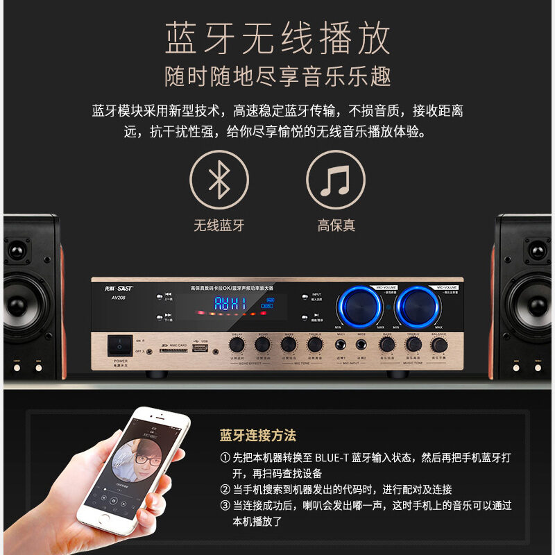SAST/SAST Av208 Amplifier Home Heavy Bass Bluetooth Audio High Power Professional Partition Fixed Resistance Constant Pressure