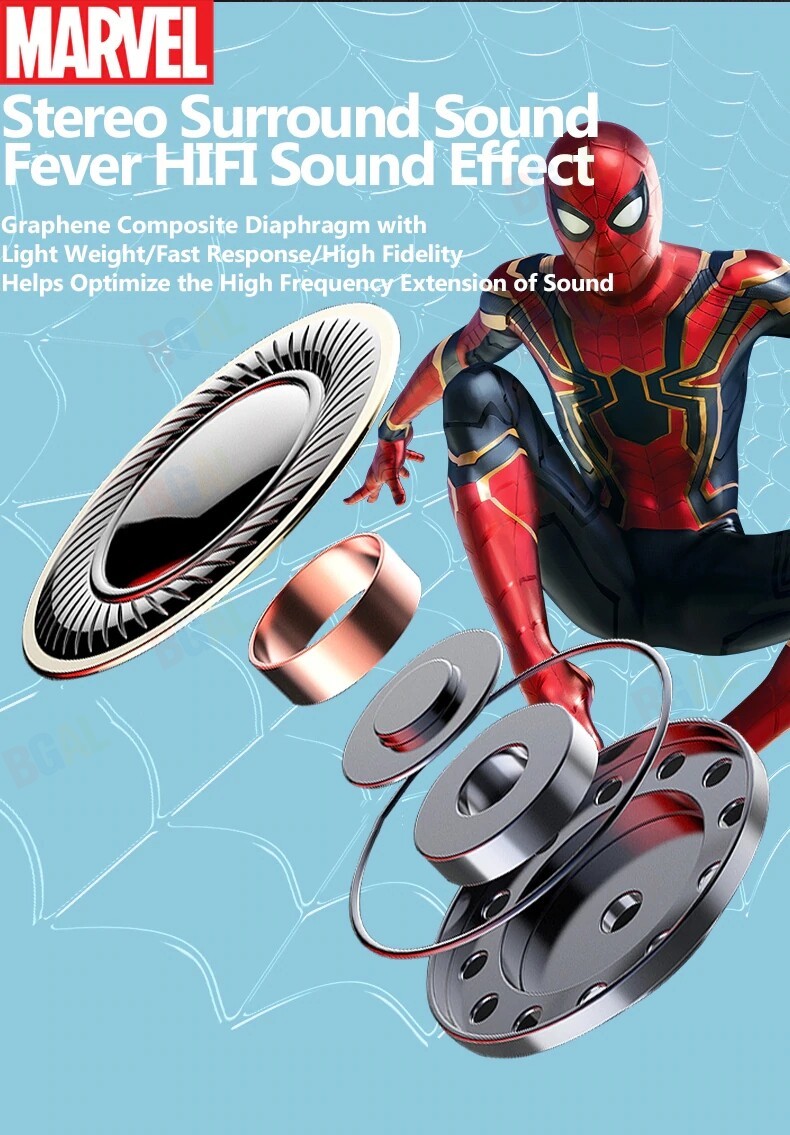 100% Authentic Marvel True Wireless Earphones Stereo Earbuds with LED Display Bluetooth V5.0 Wireless Earphones Iron Man Mini TWS Captain America Black Widow Spider Man BTMV09