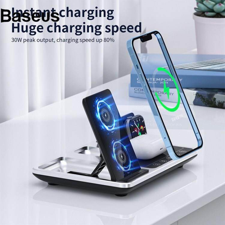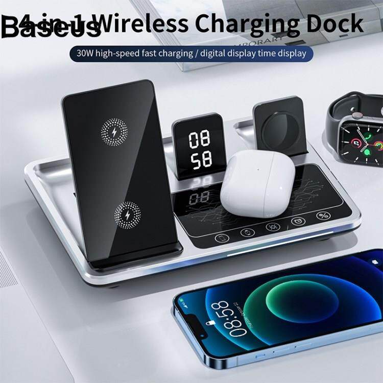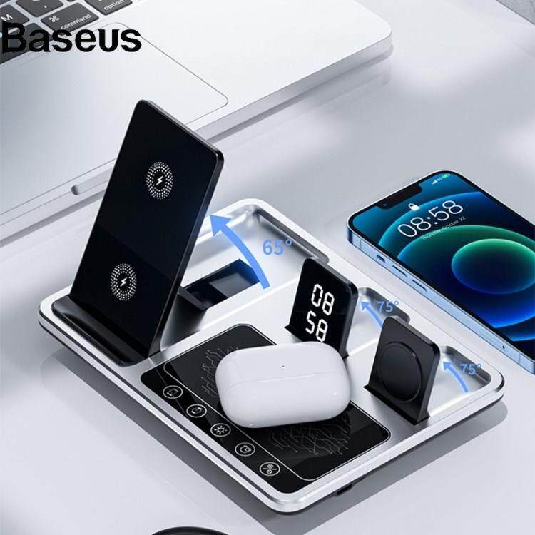 Baseus R11 Multifunctional 4 in 1 Wireless Charger Folding Portable Charging Station with Digital Display, White Light, Time Function
