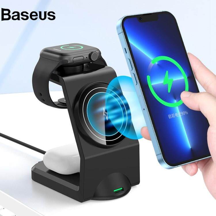 Baseus WT158 3-in-1 15W Magnetic Wireless Charger Stand Multifunctional Charging Dock Station for Phone Earphone Watch