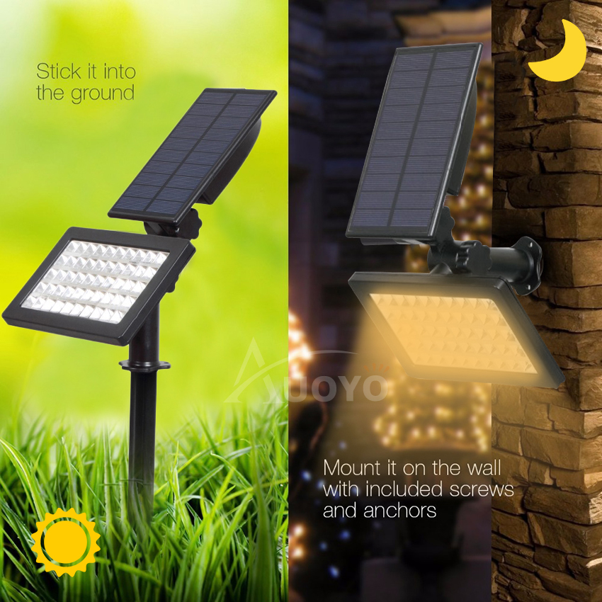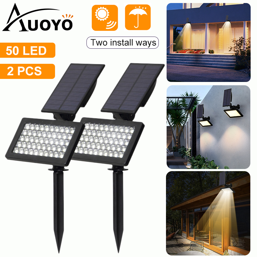 Auoyo Solar Light Outdoor Garden Lights 50 LED Spotlights Lawn Lamp Balcony Light IP65 Waterproof Security Torch Light Automatic On/Off for Garden Yard Path