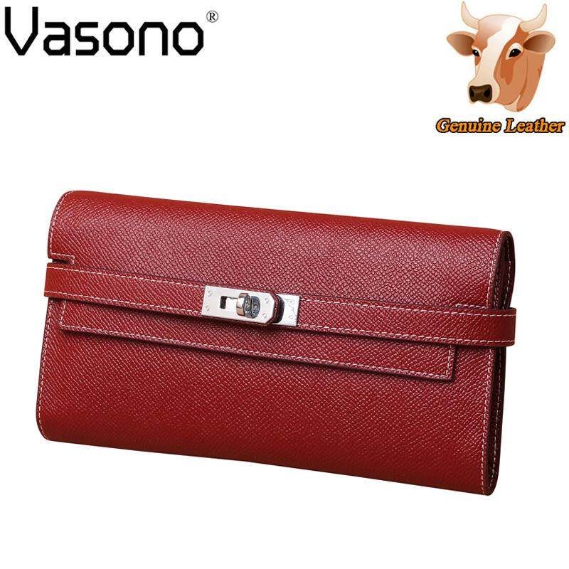 Vasono High Quality Italian Imported Genuine Cow Leather Epsom Birkin Long Clutch Wallet Women Purse Money Clip Holder
