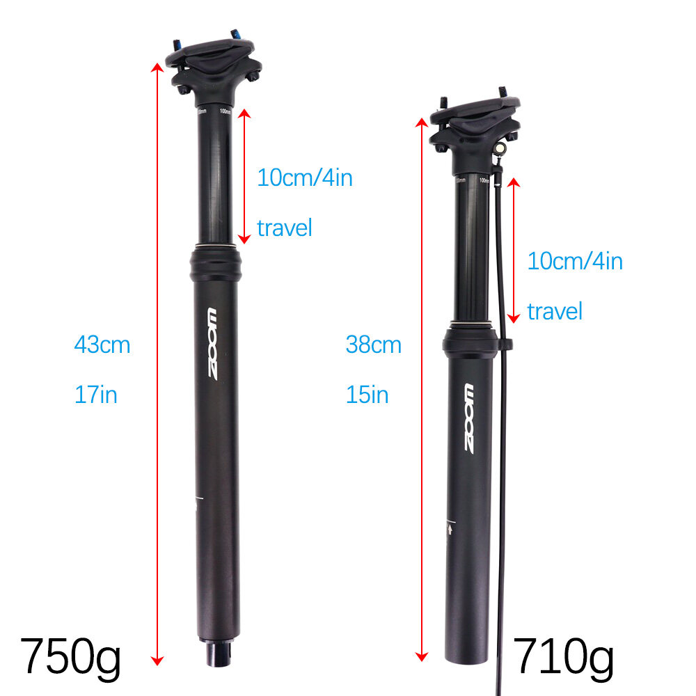 Zoom MTB Dropper Seatpost internal/ external Routing 100MM Travel bike Height Adjustable seat post 27.2/30.9/31.6 X385MM/410MM Remote Wire Control