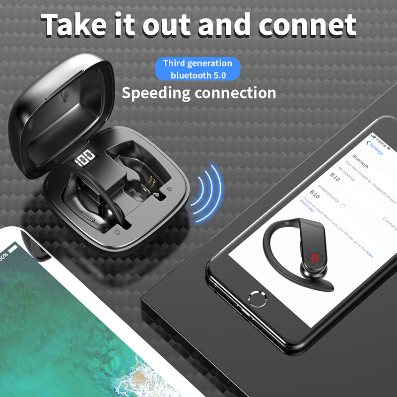 Newmsnr B10 Bluetooth5.0 Wireless Earphones 8D Cinema Sound Wireless Earbuds IPX6 Waterproof Bluetooth Headset Noise Reduction Bluetooth Earphone Sport Headphones Earpiece For Xiaomi/Huawei/Iphone/Sam
