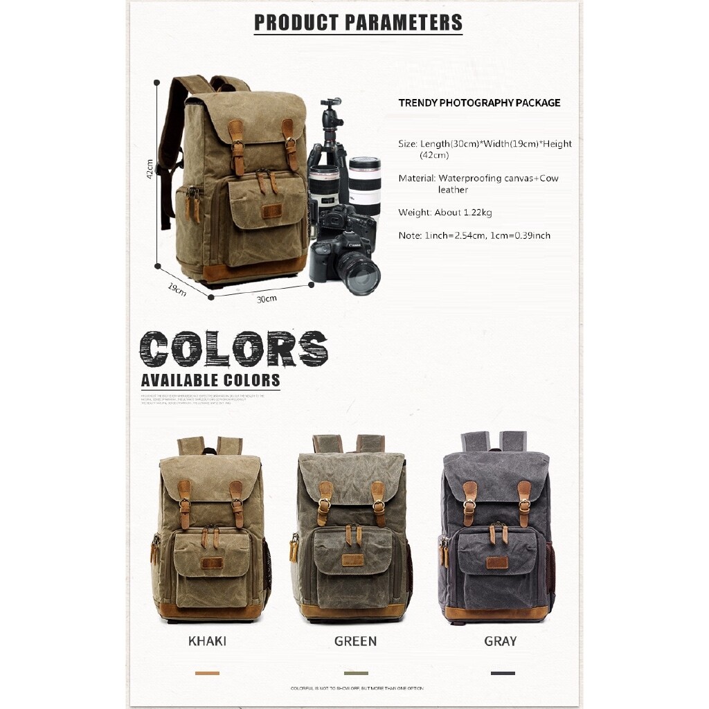 Selens Vintage Large Backpack SLR Camera Bag Waterproof Canvas 15 inch Laptop Photo Bag For Cannon Nikon Fuji Camera