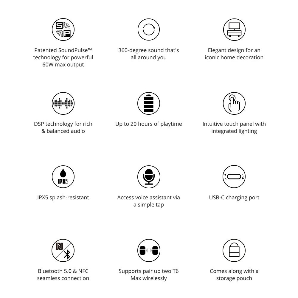 Tronsmart Element T6 Max 60w Super Bass Bluetooth 5.0 NFC Speaker SoundPulse 20 Hours Playtime USB-C