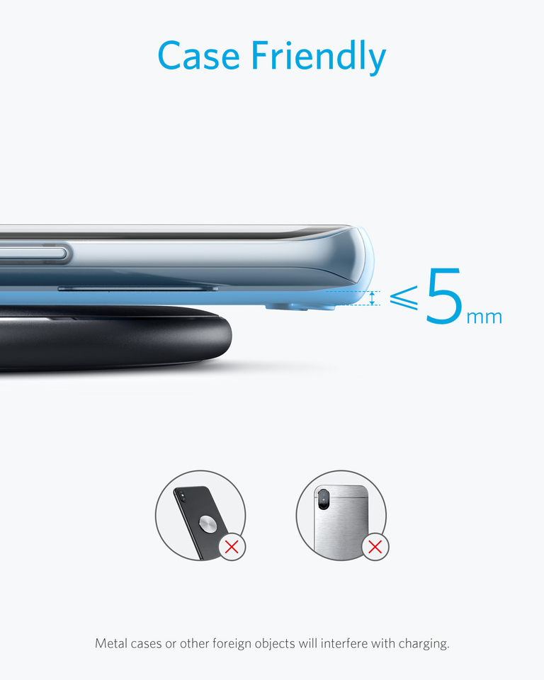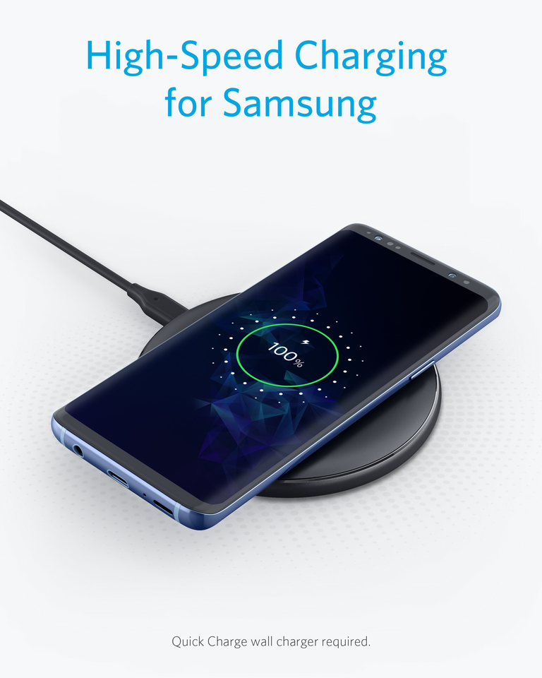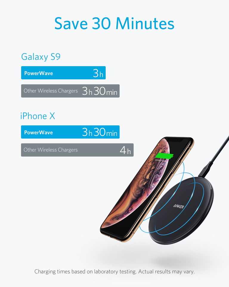 Anker PowerWave Wireless Charger Pad, Compatible iPhone 13/12/11/X/8 Series, AirPods/Pro, 10W Fast-Charging Galaxy S Series Galaxy Note
